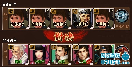 右骨都侯的召喚神獸是白虎,而這個時候相信絕大多數(shù)墨者都跟我一樣,用的是朱雀,所有,在相性上面是被克制的。而右骨都侯的陣型,也決定了兵種相克的原理并不好利用,因此我們選擇同兵種武將對陣的方式布陣。