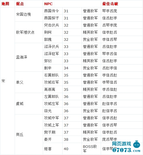 墨攻宋國(guó)各圖兵種等級(jí)與最佳配置表