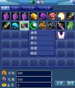 VIP包裹:是只對VIP玩家開放的包裹位置,成為VIP即可在有效日期內使用該包裹,VIP過期后VIP背包被鎖定,只能取出不能放出,再次成為VIP包裹會重新激活使用。