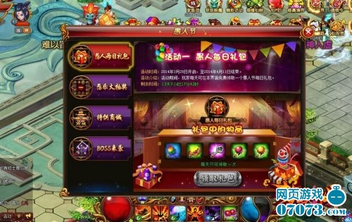在活動期間,玩家每天可以在愚人節(jié)活動界面免費領取一個節(jié)日禮包,靈氣果、強攻丹、密寶鑰匙等等豐厚的獎勵讓玩家在節(jié)日期間可以肆意揮霍,盡享歡樂。趕快來登陸領取吧。