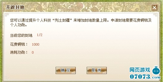 2.每提升一級個人科技中的“列土封疆”,玩家就可以多創(chuàng)建一塊封地。