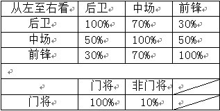 說明:若一個后衛(wèi)球員A放在中場的位置,則該球員在球隊中只發(fā)揮了70%的能力。