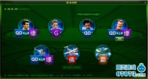 比賽方式:每周1、3、5的20:00點(diǎn)系統(tǒng)將入選球會(huì)會(huì)員,自動(dòng)報(bào)入【球會(huì)爭霸賽】進(jìn)行比賽,方式為1V1的血戰(zhàn)到底模式(必須分出勝負(fù)),勝者所在球會(huì)記1分,敗者0分,所有參賽選手無論勝者都只參加一場 比 賽;如果最終兩個(gè)球會(huì)的得分相同,則最后一場比賽戰(zhàn)勝的球會(huì)獲勝。