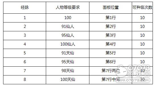 經(jīng)脈隨著等級的提升而開放(對應(yīng)等級開放的經(jīng)脈如下圖)