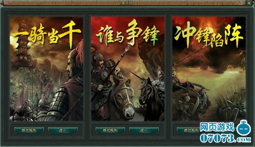 在“競(jìng)技場(chǎng)”系統(tǒng)中,有三種競(jìng)技模式:“一騎當(dāng)千”“誰(shuí)與爭(zhēng)鋒”“沖鋒陷陣”