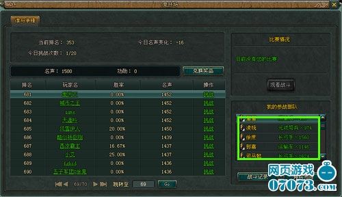 C.每個(gè)玩家初始擁有名聲1500。名聲代表玩家在該功能中的表現(xiàn)。影響到玩家的排名。