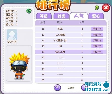 、俦20級以下玩家拜訪增加1點人氣值(小于等于20級)