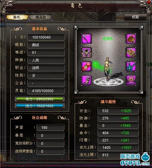 聲望:角色的聲望值,聲望值是您角色身份地位的象征