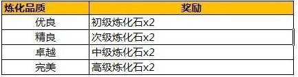 活動內(nèi)容:活動期間,煉化獲得不同品質(zhì)的裝備,則可獲得對應的煉化石,獎勵可重復獲得