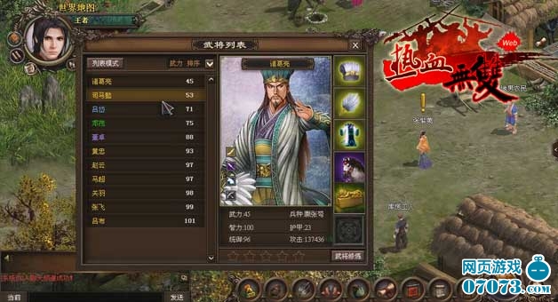 游戲的另一個亮點就是陣法。在《熱血無雙》中擁有數(shù)十套陣法供玩家選用,陣法分為進攻類陣型、防御類陣型和輔助類陣型三種。進攻類陣型可以將DPS輸出提高到最大,玩家的隊伍里如果都是呂布趙云之類的武將就可以用這個陣法將對方轟殺成渣;防御類陣型可以提升防守和血量,需要堅守的時候不妨可以用一下這類陣型;輔助類陣型主要是配合武將技和君主技的使用,可以提高武將技使出的概率。不同于其他三國類頁游的是,在《熱血無雙》中陣法都有相生相克,如果你還局限在老的模式,想單憑一種陣型沖殺戰(zhàn)場,那是無法平定亂世的。如何選擇最適合自己在戰(zhàn)場上的陣法,這一點在策略性上也給了玩家很大的選擇余地。