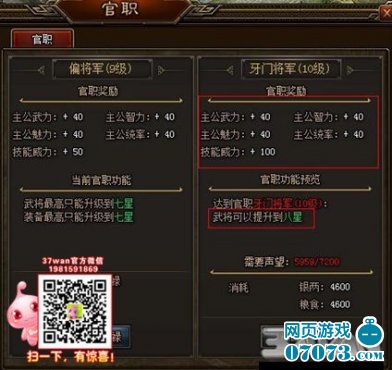 37wan三國魂網(wǎng)頁游戲中的主角人物的官職等級高低決定了武將的升星等級和征收收益,所以間接影響到整體戰(zhàn)斗力和可持續(xù)發(fā)展能力的強(qiáng)弱。升級官職需要消耗相應(yīng)的聲望,玩家如何才能獲得足夠的聲望來升級官職呢?下面是三國魂官職攻略。
