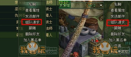 1)在游戲界面中點(diǎn)選您希望組隊的玩家,鼠標(biāo)左鍵點(diǎn)擊屏幕上方的玩家快捷圖標(biāo),在彈出的菜單中,選擇 “組隊請求”即可。