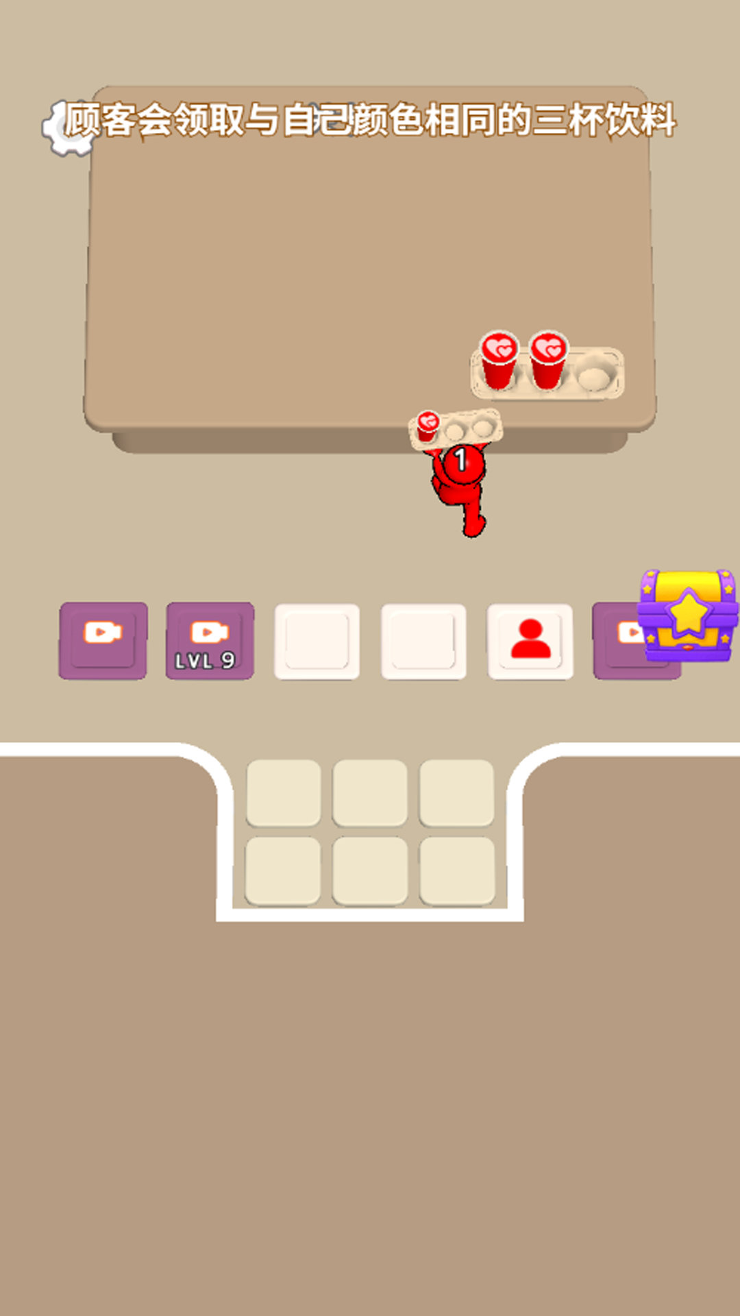 2、進(jìn)入下一關(guān)后,繼續(xù)點(diǎn)擊顧客來(lái)領(lǐng)取飲料,完成當(dāng)前任務(wù)就能向前推進(jìn),之后仍需持續(xù)點(diǎn)擊領(lǐng)取。
