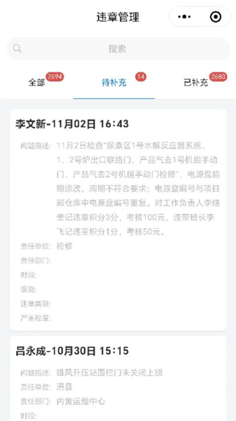 用戶也可以在線對相關的違章進行管理,輕松查看。系統(tǒng)提供違章處理流程指引,支持在線完成整改確認,確保違章處理規(guī)范高效。