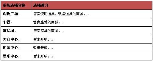 系統(tǒng)店鋪是官方經(jīng)營,向玩家售賣各種游戲道具物品或娛樂服務(wù)的店鋪,包括:裝備、使用道具、座駕、家具、小游戲等。