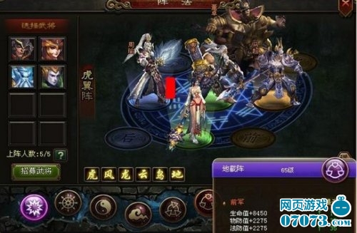 今天我們來說說這個游戲的陣法系統(tǒng),在神將三國中,陣法是可以提升人物的生命值,防御,攻擊,速度,命中,暴擊的。陣法是一個九宮圖,游戲是最多可以上陣5個人,所以不同陣型就是在這個九宮圖中選擇5個不同的位置來體現(xiàn),陣法使用武將上陣只需要將左邊的武將拖動到右邊的發(fā)光的位置就可以了。前排加的屬性是生命,物防和法防,一般是將防御的武將放在這個位置;中排是加的物攻,法功和暴擊,一般是將攻擊武將放在這個位置;后排加的是命中和速度,一般是將輔助的武將放在這個位置的。