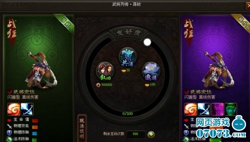 完成列傳劇情即可開(kāi)啟武將互動(dòng),選擇任一方式與武將互動(dòng),提升友好度。當(dāng)友好度達(dá)到滿值時(shí),他將變得無(wú)比強(qiáng)大回到你的隊(duì)伍,讓你擁有更好的明天,讓你的敵人墮入絕望的深淵!