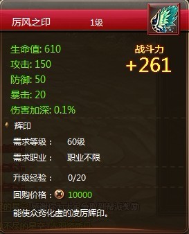 輝印系統(tǒng)說(shuō)明:使用輝印后將在人物角色的背上顯示翅膀造型(很拉風(fēng)吧),大大的增加角色的的戰(zhàn)斗力,而且輝印到達(dá)一定的等級(jí)還會(huì)獲得初始無(wú)雙值的增益,可以快人一步放出大技,掌握戰(zhàn)斗優(yōu)勢(shì)!