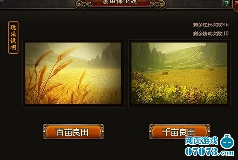 1、麥田分為兩種(百畝良田、千畝良田),每次可以選擇一種麥田