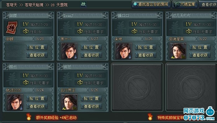 說起來想開額外經(jīng)驗太簡單了,自己練一個15~17,17~19,19~21的女號,刷傳奇武將的時候肯定有不少廢號啊,(男號滿地都是,自己就湊過來了),需要的時候上號自己掛著占坑去,上后面點的房間一坐,這至少5%的經(jīng)驗不就到手了嗎?有那么費勁嗎?而且一個幫派還可以共享這些廢號,你大概都不用自己練。