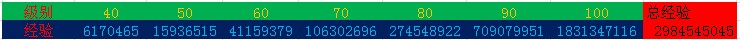 可以看出40級和50級的各個對應(yīng)元素所需經(jīng)驗(yàn)值的比例是不變的,50級/40級的比例是2.5827,