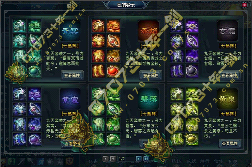 從人物面板的“查看套裝”按鈕可以查看所有套裝的套裝屬性。