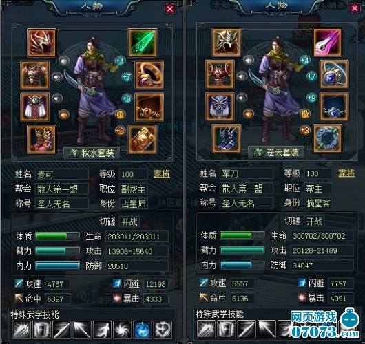 他們切磋的結(jié)果竟然是麥可贏了。最終結(jié)論是:凌波微步確實非人類。軍刀的優(yōu)勢是3基礎(chǔ)屬性高,4副屬性也不錯,劣勢是:軍刀的命中跟不上麥可的躲避,相差太多。麥可的優(yōu)勢就是躲避高。劣勢很多,3基礎(chǔ)屬性不高,這個姑且不論,古玉的效果也沒有發(fā)揮出來。因為軍刀也有一個6級躲避,麥可打軍刀是有很多打不中的,失去了吸血古玉的最大功效。終上所述:麥可換上100的秋水,用上天仙古玉,軍刀沒有一絲機(jī)會。同樣的, 和軍刀屬性差不多的玩家,對上麥可,就是魔魘的開始。