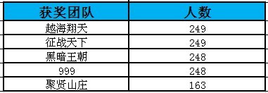 凡是滿足獲獎(jiǎng)條件的團(tuán)隊(duì),團(tuán)長都可以獲得我們的超級(jí)大獎(jiǎng)哦。以下是人數(shù)最高的五大團(tuán)隊(duì)。
