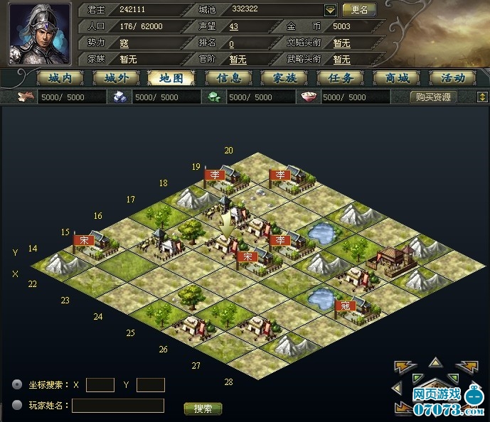 2、 玩家城池:玩家城池按人口規(guī)模分1~6級(jí),人口越多則城池外觀越宏偉。每個(gè)玩家最多只能擁有1個(gè)主城,10個(gè)分城。