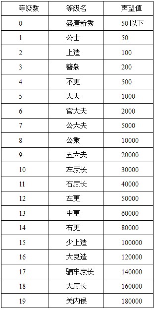 聲望是玩家在游戲中實(shí)力的一種體現(xiàn),聲望有等級設(shè)定,達(dá)到相應(yīng)聲望值后便會自動獲得該等級的官階稱號,聲望越高,勸降6星以上武將的成功率越高。