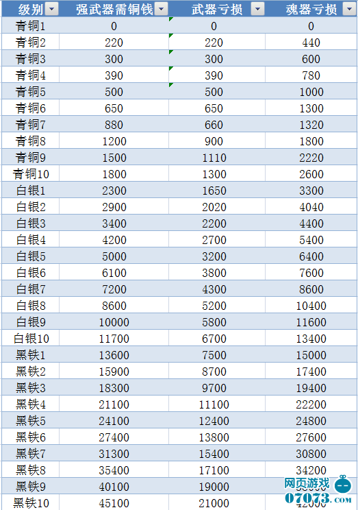 5,強(qiáng)化魂器所需銅錢是同級別武器的2倍。