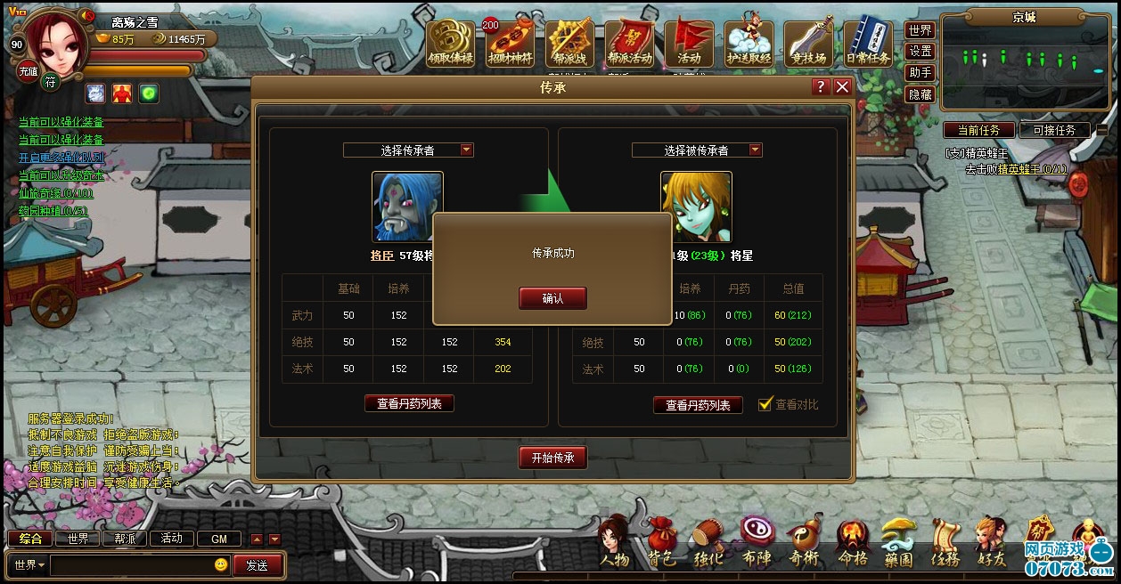 新版神仙道終于把這個問題解決了,只要花銅幣和閱歷,就可以把培養(yǎng)的屬性和等級“繼承”給另一個伙伴,如下面組圖所示,就把將臣的等級和培養(yǎng)屬性直接繼承給妖嬈了。點擊可查看大圖: