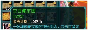 藏寶圖分為3種:空白藏寶圖、初級藏寶圖以及高級藏寶圖。副本中產(chǎn)出的是空白藏寶圖,獲得空白藏寶圖之后,可雙擊使用,進(jìn)行鑒定,有機(jī)會鑒定出初級藏寶圖或者高級藏寶圖,高級藏寶圖挖出極品道具的幾率會比初級藏寶圖大一些。