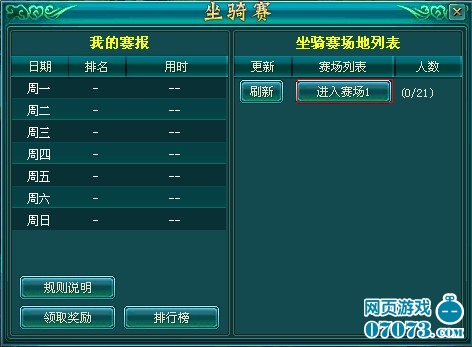 1、坐騎賽分為日常賽與決賽,日常賽為周一至周六16:00—16:20開啟,決賽為周日16:00—16:20開啟;