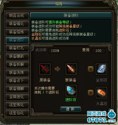 1、當(dāng)裝備進階成功率低于100%時,則有可能進階失敗