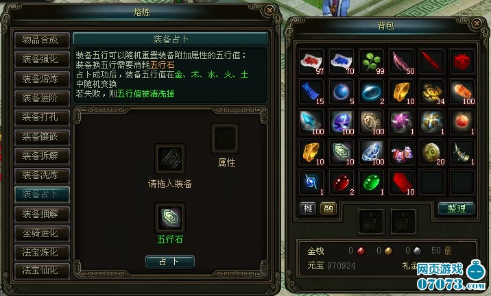 天地諸神裝備占卜=需要進行占卜的裝備+五行石