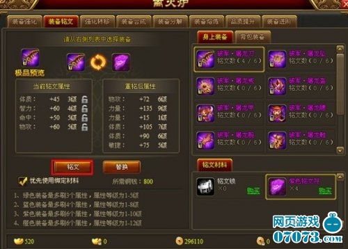 3、紫色裝備最多可有6個(gè)銘文屬性,屬性等級為1-10級;