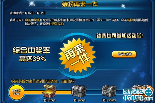活動(dòng)內(nèi)容:購(gòu)買和續(xù)費(fèi)任意時(shí)長(zhǎng)裝扮都有機(jī)會(huì)獲得相同時(shí)長(zhǎng)的”再來(lái)一件“獎(jiǎng)勵(lì),購(gòu)買裝扮類道具達(dá)到指定額度還能領(lǐng)取額外獎(jiǎng)勵(lì)!