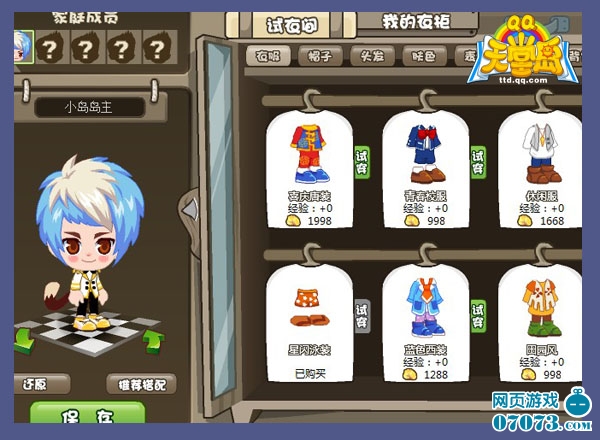 《QQ天堂島》滿足大家的充分需求,將所有服飾分成七個部分。分別為衣服、帽子、頭發(fā)、膚色、表情、彩妝、背飾。目前彩妝系列暫時沒開放,其他的裝扮選擇性都非常多。在試衣間里,選擇自己喜愛的裝束,點擊試穿立即會在角色身上顯示穿著后的效果,整體效果達到要求之后,點擊保存可以一次性購買角色身上所有裝束,非常方便喲!時常來試衣間看看,一定會讓你收獲驚喜。特別提醒的是,節(jié)假日來看看,會讓你發(fā)現(xiàn)各種神秘裝束喲。