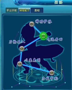 在訓寵面板,可以看到有一個類似人物經(jīng)脈的圖樣,一共有五個節(jié)點,沒提升一個節(jié)點都能提高寵物的能力。