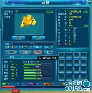 當(dāng)玩家的寵物大于或等于40級(jí),即可使用寵物轉(zhuǎn)生功能。