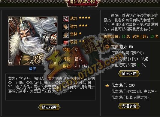 王朝霸域黃忠武將展示