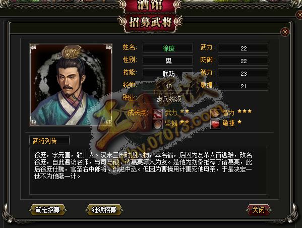 王朝霸域徐庶武將展示