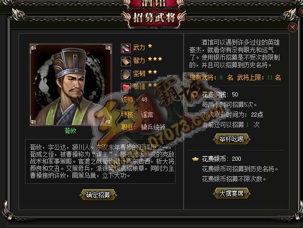 王朝霸域荀攸武將展示
