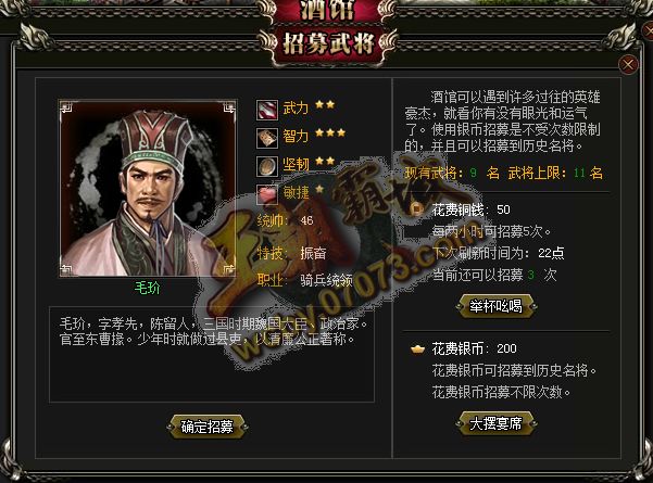 王朝霸域毛玠武將展示