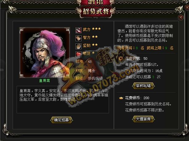 王朝霸域黃甫嵩武將展示