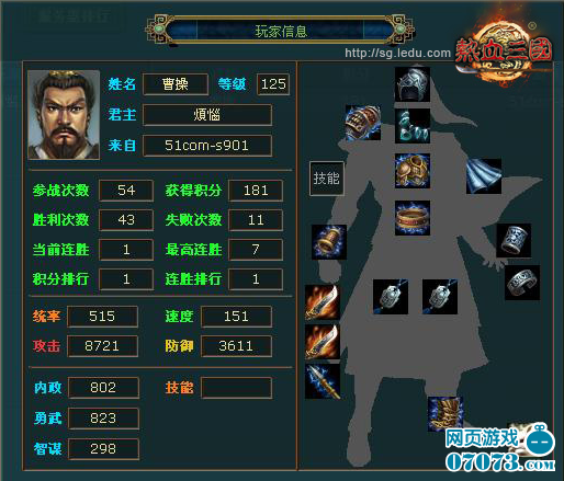 煩惱:鄙人是51com熱血三國的煩惱,日常生活中是做機器類的。平常愛好游泳,足球之流。以及看一些三國類的書籍。