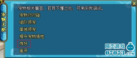 玩家等級達到10后可以到長安城寵物天使(76,27)處進行煉妖。