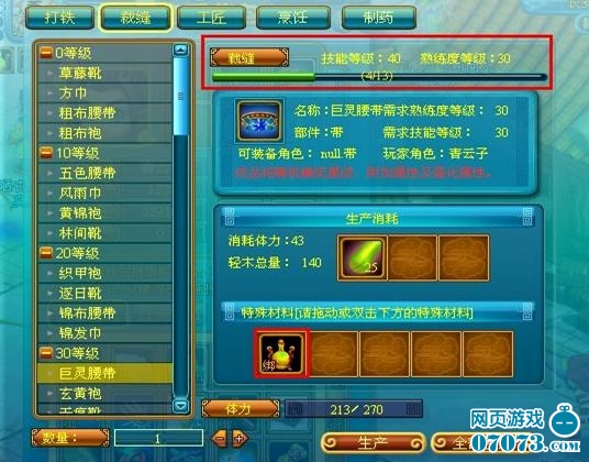 2.使用特殊材料”秘銀“將比使用”玄鐵“有更高的幾率生產(chǎn)出更高星級的武器裝備;