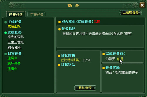另一種方式,適用于進(jìn)行任務(wù)時尋找NPC。打開任務(wù)界面,點擊其中帶有下劃線的NPC名字,即可自動行走至該NPC跟前。
